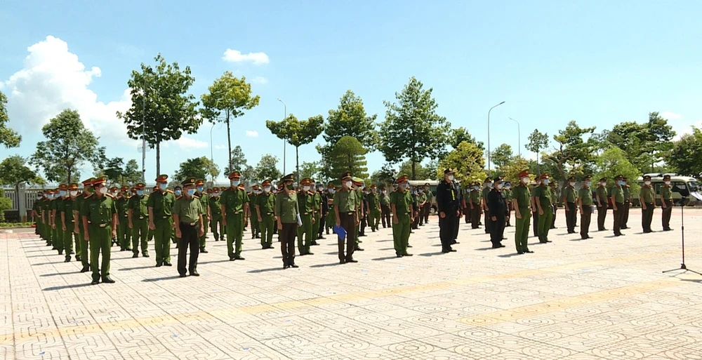 Chiều 22-8, công an tỉnh Bà Rịa- Vũng Tàu tổ chức lễ ra quân tiếp tục tăng cường lực lượng tham gia phòng chống dịch, giữ gìn ANTT tại địa bàn thị trấn Long Hải, huyện Long Điền-khu vực dịch COVID-19 đang diễn biến hết sức phức tạp.
