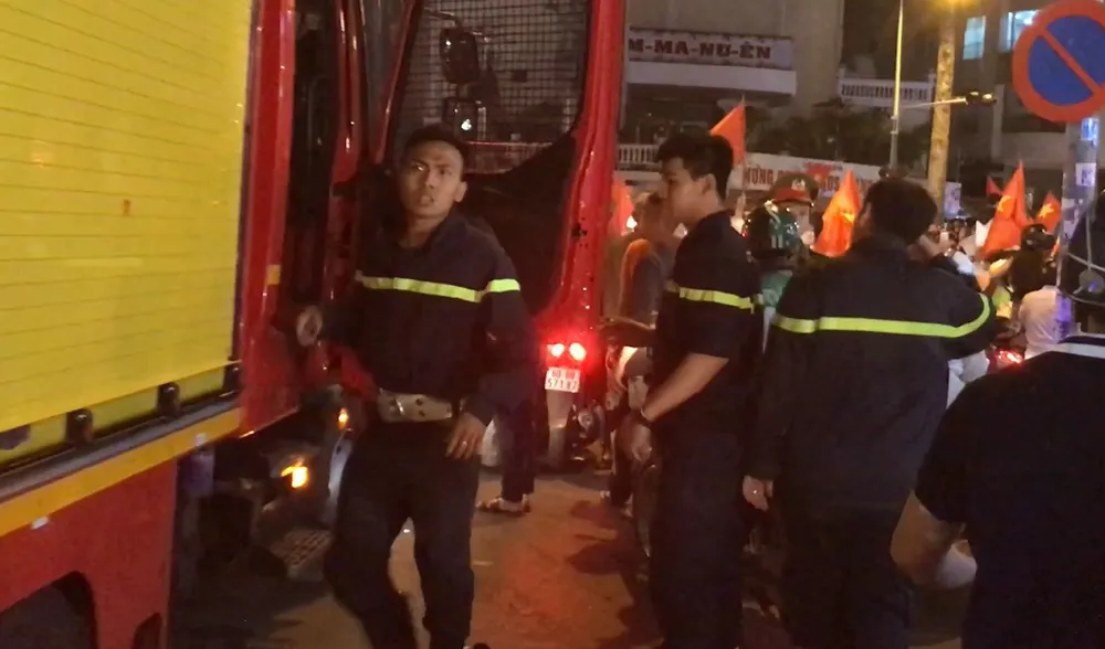 Không những vậy, lực lượng CS PCCC cũng được điều đến để xử lý số pháo sáng vì sợ gây nguy hiểm cho người tham gia giao thông khác.