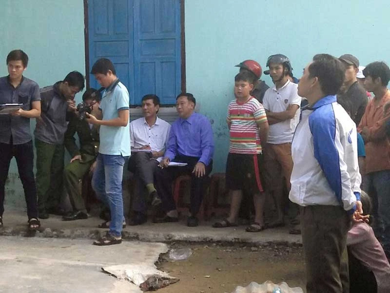 Người dân tập trung xem lực lượng chức năng khám nghiệm hiện trường, nơi xảy ra vụ việc. Ảnh: CTV