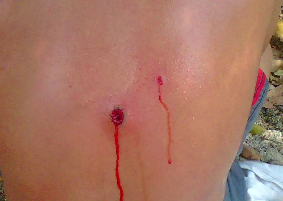 Vết thương trên lưng anh N. do đạn cao su gây ra.