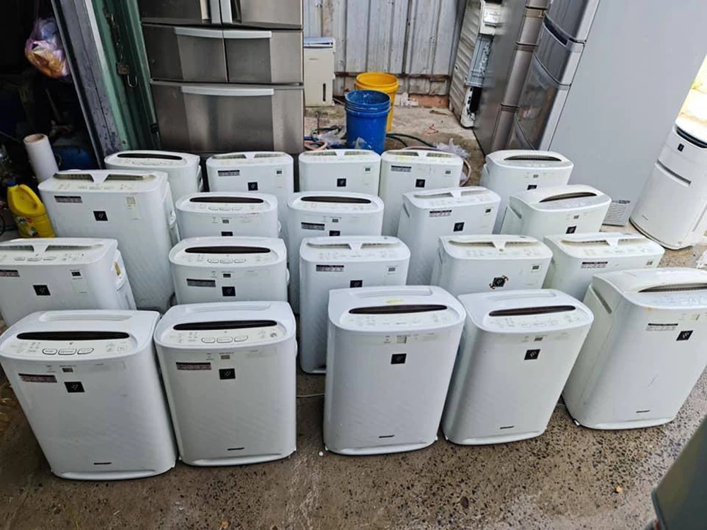 Bên trong, cảnh sát phát hiện 138 tủ lạnh, 104 máy lọc không khí là hàng Nhật cũ đã qua sử dụng.