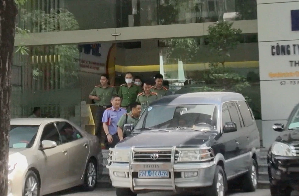 Công an đến làm việc liên quan đến vụ ông Diệp Dũng tại trụ sở Công ty Đầu tư tài chính Nhà nước - nơi ông Diệp Dũng từng được chuyển công tác về đây trước khi về công tác tại Công ty Xổ số Kiến thiết TP.HCM. Ảnh: N.TÂN