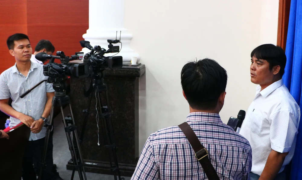 Hiệp sĩ Nguyễn Thanh Hải trả lời phỏng vấn báo chí.