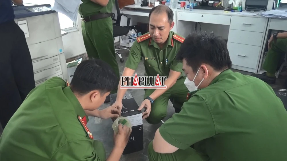 Qua khám xét, lực lượng công an đã thu giữ nhiều tài liệu, hồ sơ, thiết bị điện tử trong hoạt động kiểm định tại trung tâm.