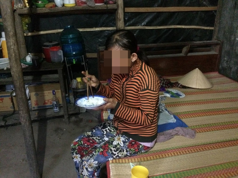 Mới sinh con nhưng bà Kh. chỉ ăn cơm trắng trong căn chòi dột nát của mình