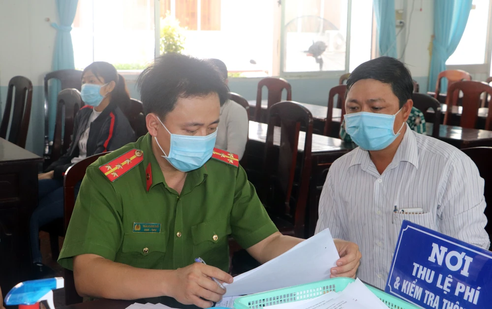 Ngoài việc tạo điều kiện tốt nhất cho bà con đến làm thủ tục, lực lượng công an còn quan tâm đến phòng, chống dịch bệnh COVID-19 hiện đang diễn biến phức tạp.