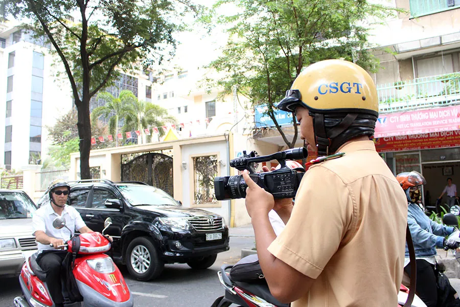 CSGT TP.HCM dùng camera ghi lại hình ảnh vi phạm giao thông để phạt nguội và trích xuất hình ảnh vi phạm để xử lý. Ảnh: LÊ THOA