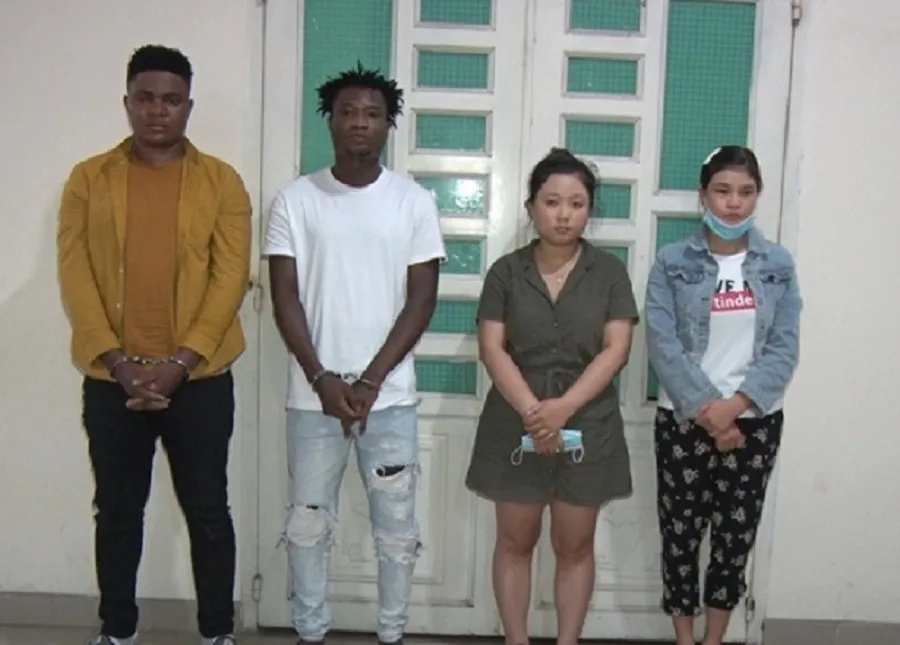 Một nhóm nghi can, có cả người nước ngoài lừa đảo qua mạng xã hội bị công an Đồng Nai băt giữ. Ảnh: VH.