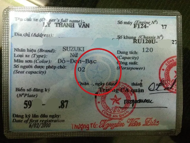 Giấy đăng ký xe giả có mã số hiệu không được tạo ra bằng phương pháp đóng dấu trực tiếp. Mã số của giấy đăng ký xe thật được đóng dấu trực tiếp, thể hiện rõ dấu vết tràn mực tại ria mép, còn mã số hiệu của giấy đăng ký xe giả được tạo ra bằng phương pháp in màu kỹ thuật số nên không có dấu vết tràn mực, ria mép có nhiều hạt mực khác nhau đan xen…