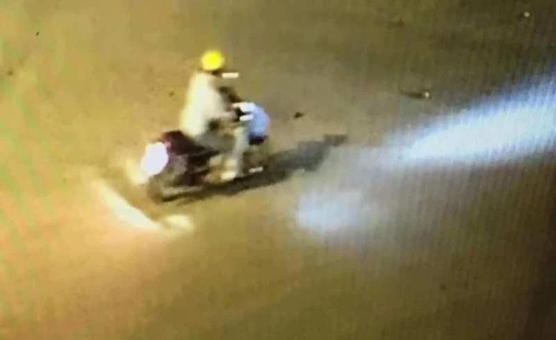 Nghi phạm đi chiếc xe máy của nạn nhân trên đường.