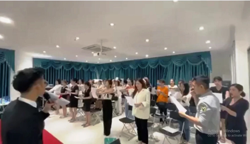 Mặc dù có quy định không tụ tập đông người nhưng thẩm mỹ viện này vẫn tổ chức sự kiện với nhiều người và không đeo khẩu trang. Ảnh cắt từ clip
