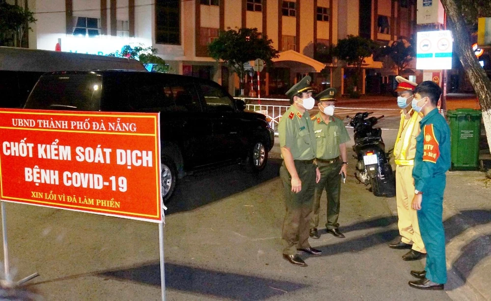 Thiếu tướng Vũ Xuân Viên, Giám đốc Công an TP Đà Nẵng đi thăm, động viên cán bộ, chiến sĩ tại các chốt kiểm soát dịch COVID-19. Ảnh: H.H