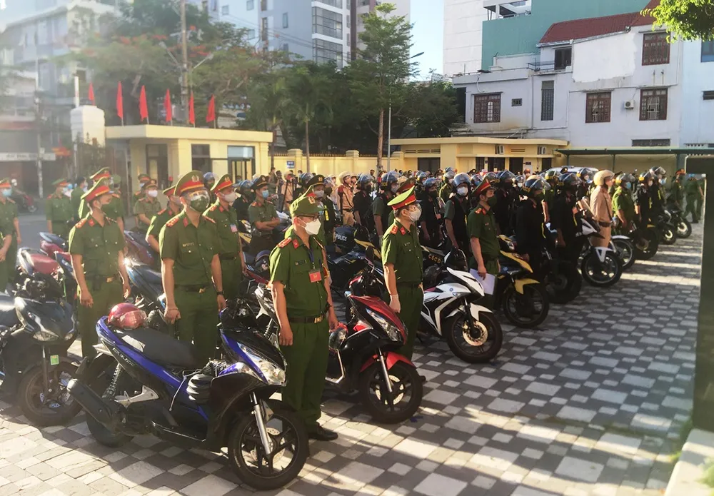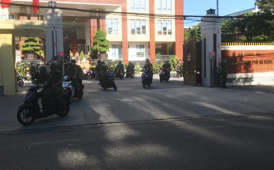 Các lực lượng Công an TP Đà Nẵng xuất quân siết chặt việc thực hiện phong tỏa toàn TP. Ảnh: HẢI HIẾU
