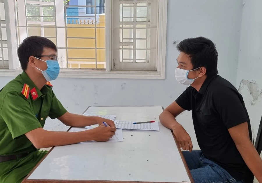 Nguyễn Anh Tùng tại cơ quan công an. Ảnh: L.H
