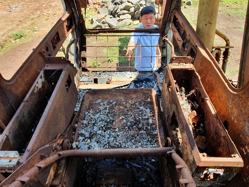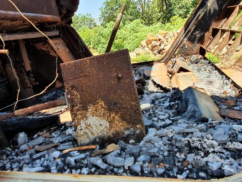 Chiếc xe múc của ông Lộc bị kẻ gian đốt cháy đã gần một năm nhưng cơ quan điều tra huyện vẫn chưa tìm được thủ phạm. Ảnh: HT