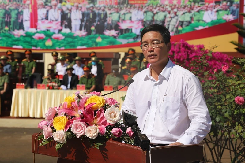 Ông Nguyễn Đình Trung, Chủ tịch UBND tỉnh Đắk Nông phát biểu tại buổi lễ ra quân trấn áp tội phạm.