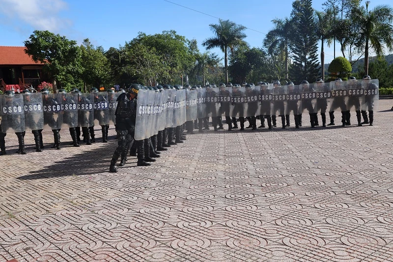 Công an tỉnh Đắk Nông trình diễn trong buổi lễ ra quân.