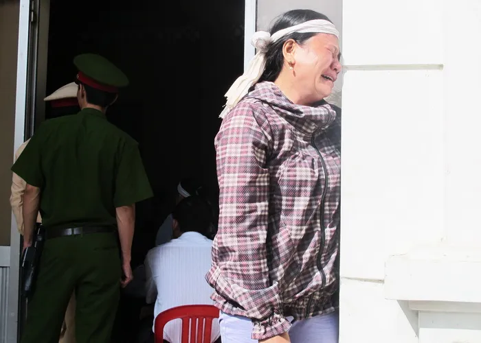 Chị Tuyết khóc ngất ngoài phòng xử án