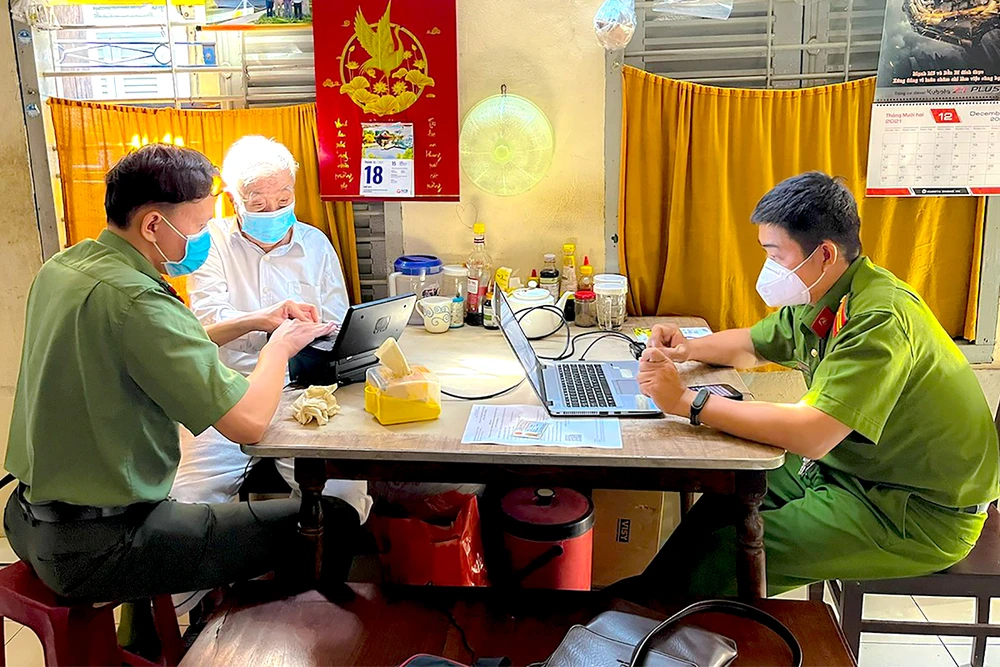 Đại úy Phạm Thanh Thỏa, cảnh sát khu vực Công an phường 5, quận Phú Nhuận, cho biết theo kế hoạch được giao, tổ công tác sẽ đến nhà người dân trên địa bàn để làm CCCD cho các trường hợp đặc biệt. Danh sách các hộ dân có người làm CCCD đã được công an phường chuẩn bị trước đó. Hiện trên địa bàn phường có khoảng 70 cụ già, có cụ đã gần trăm tuổi nhưng chưa được làm CCCD mới.
