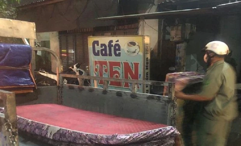 Những tấm nệm trong quán cà phê bị cơ quan chức năng thu giữ. Ảnh: CA.