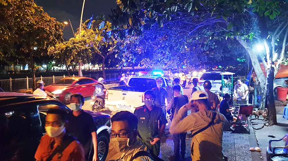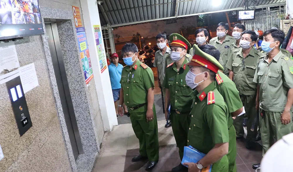 Khoảng 20 giờ 30, tổ công tác thuộc Công an quận phối hợp với Công an phường 3 đến chung cư Miếu Nổi để thực hiện công tác vận động, khuyến cáo người dân thực hiện nghiêm các quy định phòng, chống dịch.