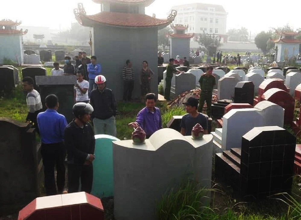 Thời điểm trên, một số người dân đi tập thể dục qua khu nghĩa trang đã phát hiện các bát hương đặt trên nhiều ngôi mộ bị đập bể nên hô hào dân làng, đồng thời báo với chính quyền địa phương. Sự việc sau đó cũng được đăng tải lên Facebook khiến dư luận xôn xao.