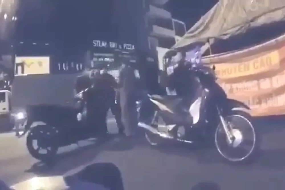 Tiếp đó, một nam thanh niên mặc áo xanh tới đánh vào mặt của người đàn ông khiến nạn nhân gục xuống. Người này sau đó được đưa lên xe máy rời đi.