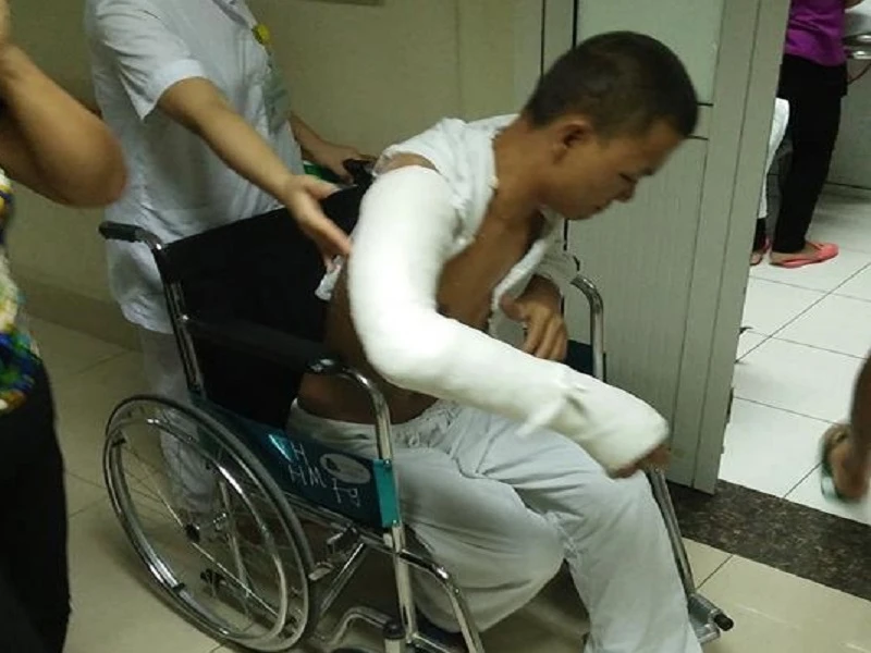 Anh Đại sau đó nhanh chóng được người dân đưa đi cấp cứu. Tại bệnh viện, anh được chẩn đoán bị chấn thương xương ở hốc mắt, mặt. Đầu của nạn nhân có nhiều vết bầm tím, tay phải bị gãy…