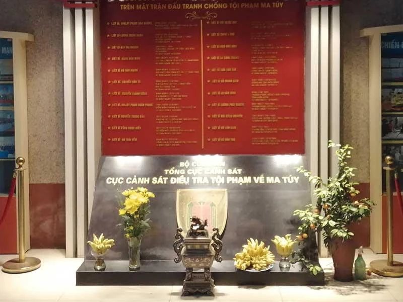 Sảnh tầng một, trụ sở Cục CSĐT tội phạm về ma túy (C04) ở quận Thanh Xuân, Hà Nội dành một vị trí trang trọng để ghi danh các liệt sĩ đã hy sinh trong cuộc chiến chống tội phạm ma túy.