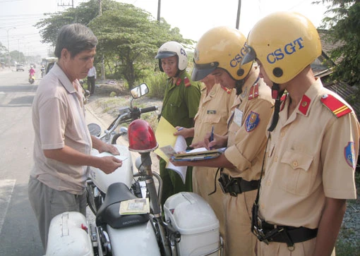 CSGT xử phạt tài xế xe tải trên tuyến quốc lộ 1K. Ảnh minh họa: mt.gov.vn