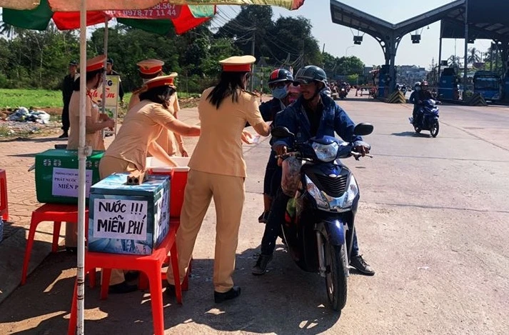 Còn trên quốc lộ 1A đoạn qua địa bàn TP Long Khánh, Công an TP Long Khánh cũng đã phát hàng ngàn chai nước và khăn lạnh cho người dân tham gia giao thông đi qua địa bàn thành phố.