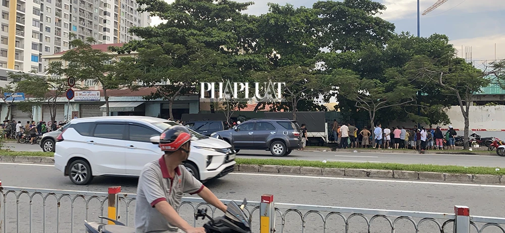 Theo ghi nhận, đây là bãi đất trống, ngay sát một công trình xây dựng và trường học. Bên ngoài bãi đất được quây tôn sắt, phía trên và xung quanh bên trong được che bằng vải bạt, bình thường ban ngày đóng kín, thường xuyên có người túc trực ở bên ngoài.