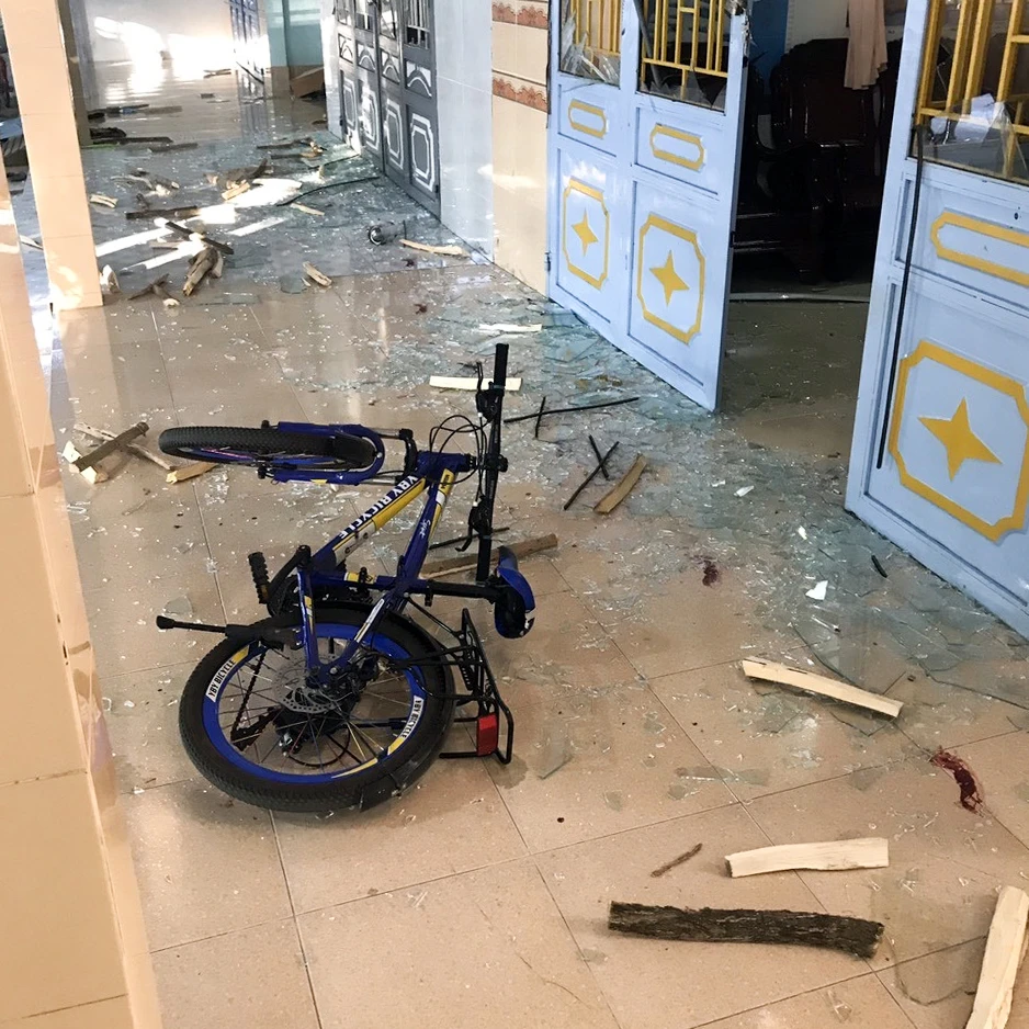 Nhóm của Tiềng đã sử dụng dao tự chế, gậy gỗ đập phá hàng rào, cửa kiếng, cửa sổ, camera… nhà bà Rông và chém gây thương tích cho ông Lil, ông Chính.