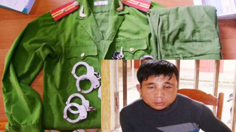 Bùi Đình An giả danh công an chiếm đoạt tài sản gây chấn động dư luận 2013 và tang vật vụ án công an thu giữ. Ảnh: Công an tỉnh Thanh Hóa