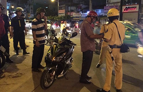 Cảnh sát giao thông, cơ động, trật tự tuần tra kiểm soát trên đường (ảnh chụp tối 3-2). Ảnh: Hoàng Tuyết