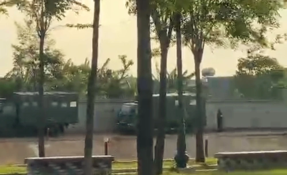 Công an canh giữ bên ngoài cho lực lượng chức năng khám xét |