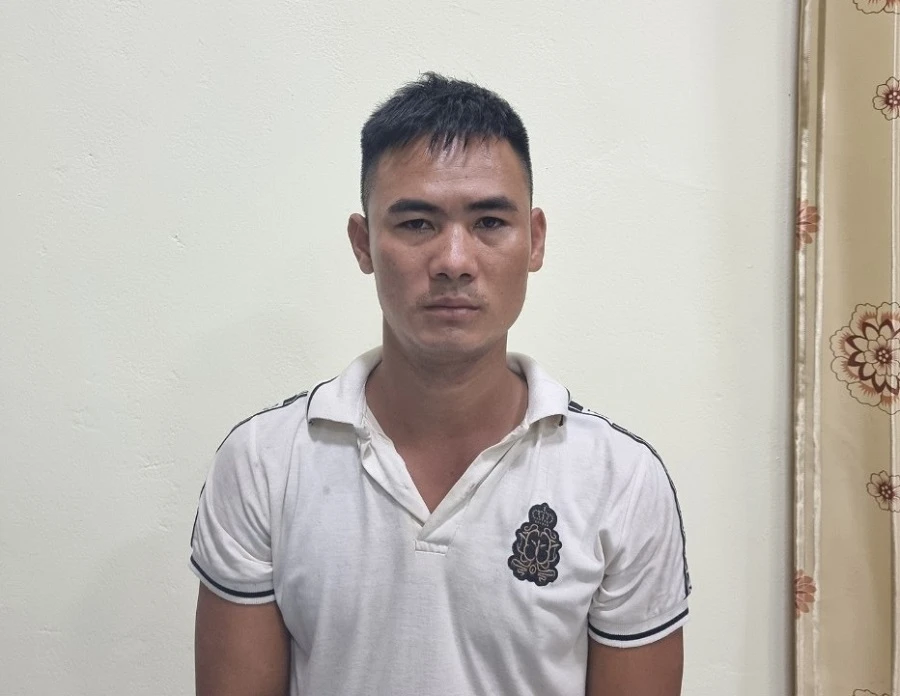 Nghi phạm Vương Văn Đoàn tại cơ quan công an