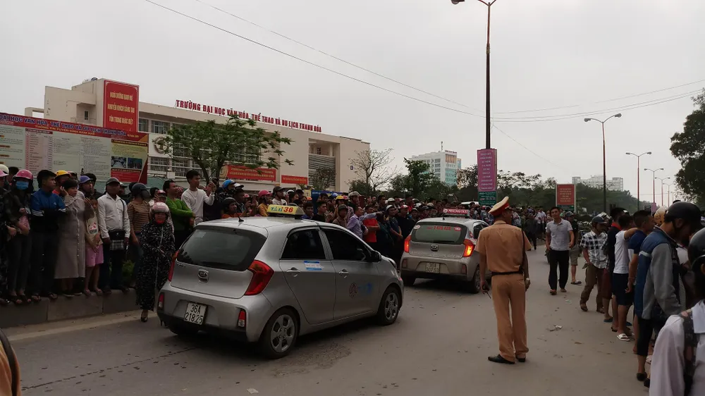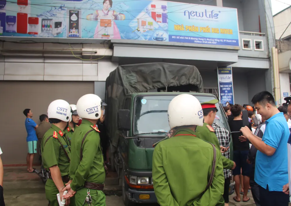 Khoảng 14 giờ chiều 27-4, Công an TP Thanh Hóa, tỉnh Thanh Hóa cùng các lực lượng chức năng có liên quan vẫn đang tiến hành khám xét, lấy lời khai của các cá nhân có liên quan bị tình nghi đến hoạt động truyền đạo trái pháp luật tại phường Đông Vệ, TP Thanh Hóa.