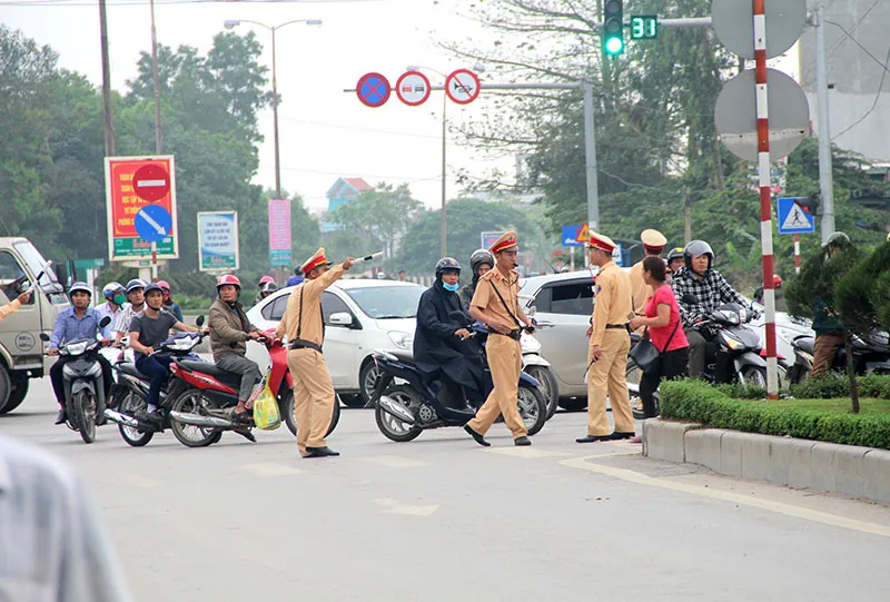 Lực lượng CSGT buộc phải phân làn khi số lượng người hiếu kỳ đổ về mỗi lúc một đông.