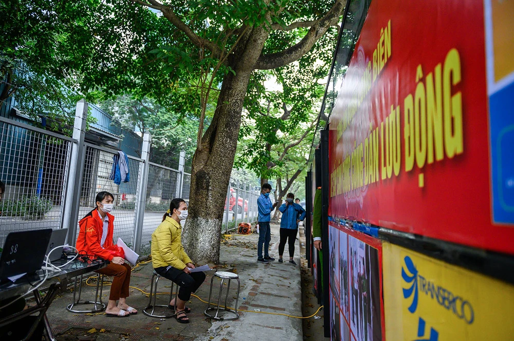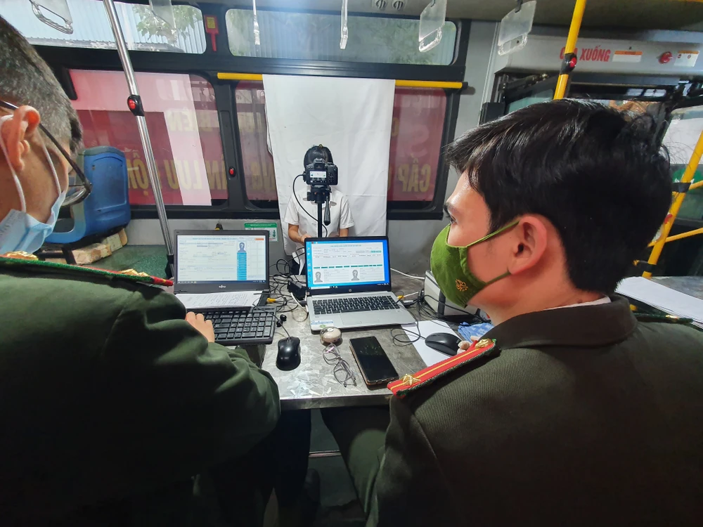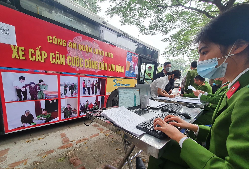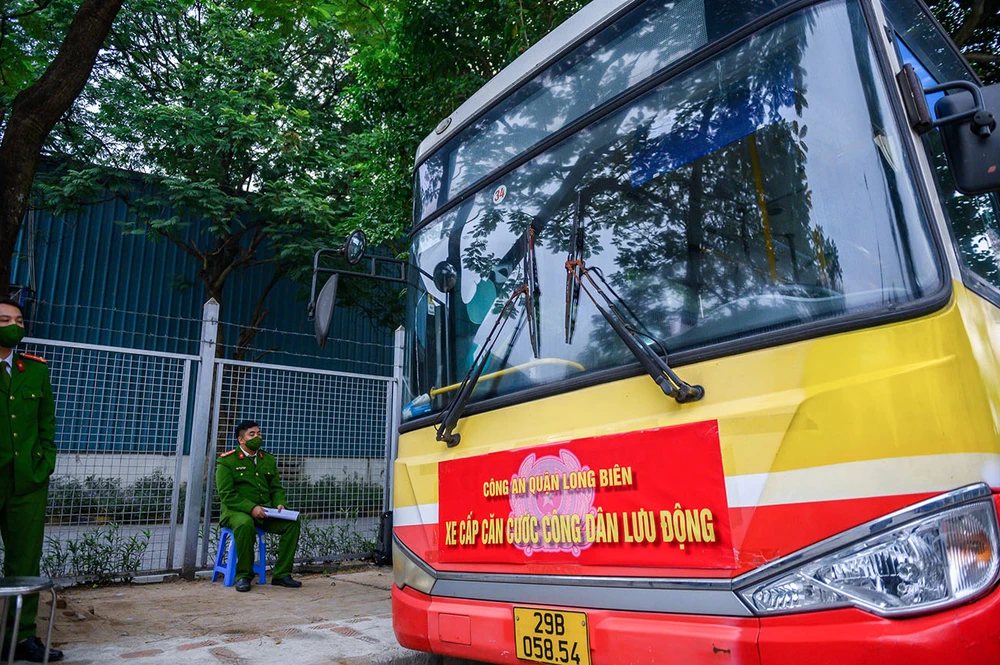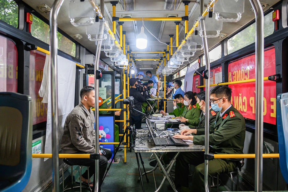 Ngày 16-11, Công an quận Long Biên, TP Hà Nội triển làm thẻ căn cước công dân (CCCD) gắn chip lưu động bằng cách sử dụng xe buýt để di chuyển đến các điểm.