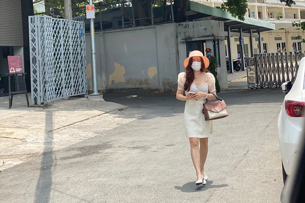 Ca sĩ Vy Oanh đến Công an TP.HCM làm việc. Ảnh: CSCC