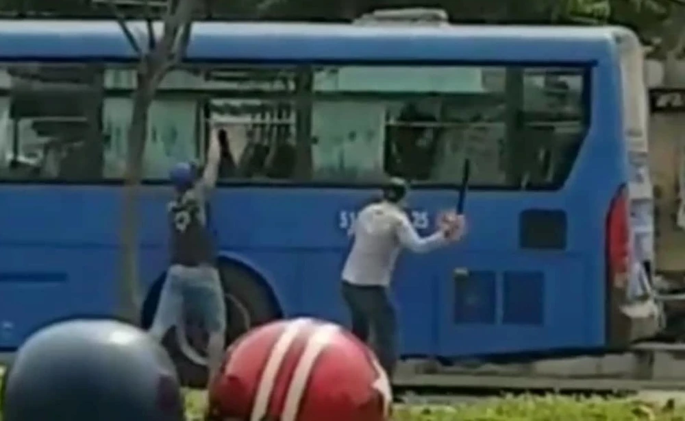 Nhóm người đập phá xe buýt vào trưa 22-12. (Ảnh cắt từ clip)