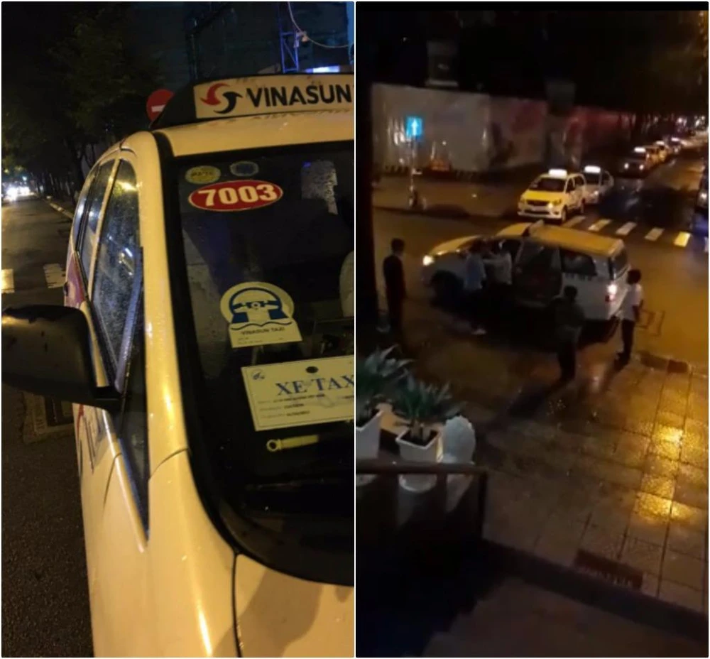 Trong clip, chiếc xe taxi có tài xế hành hung du khách dán logo của hãng taxi Vinasun. Một người đàn ông liên tục đá, đạp. Tiếng la hét của những người xung quanh, của người nước ngoài khiến cả vùng huyên náo.