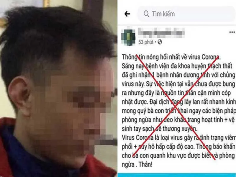Mới đây nhất, ngày 1-2, Công an huyện Thạch Thất đã triệu tập NQT (30 tuổi, tại huyện Quốc Oai) để làm rõ vụ việc đăng tải thông tin sai sự thật về dịch bệnh virus Corona trên Facebook cá nhân, gây hoang mang dư luận.