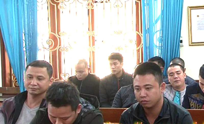 Những người đánh bạc bị Công an tỉnh Ninh Bình tạm giữ. Ảnh: CACC
