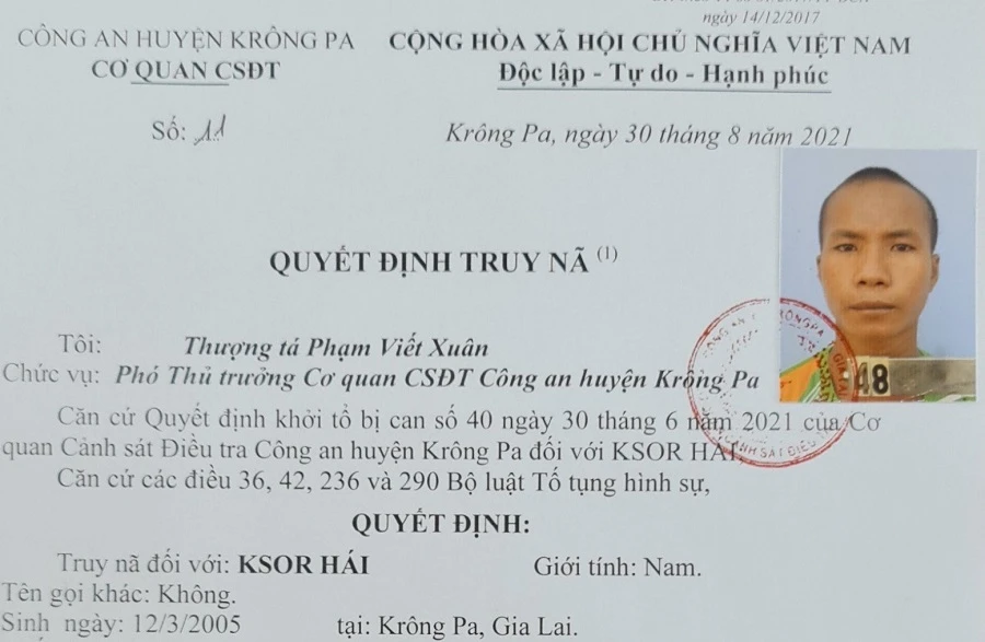 Đến ngày 30-8, hai người này trên đã trốn khỏi nhà tạm giữ Công an huyện Krông Pa. Cùng ngày, Cơ quan CSĐT Công an huyện Krông Pa đã quyết định truy nã.