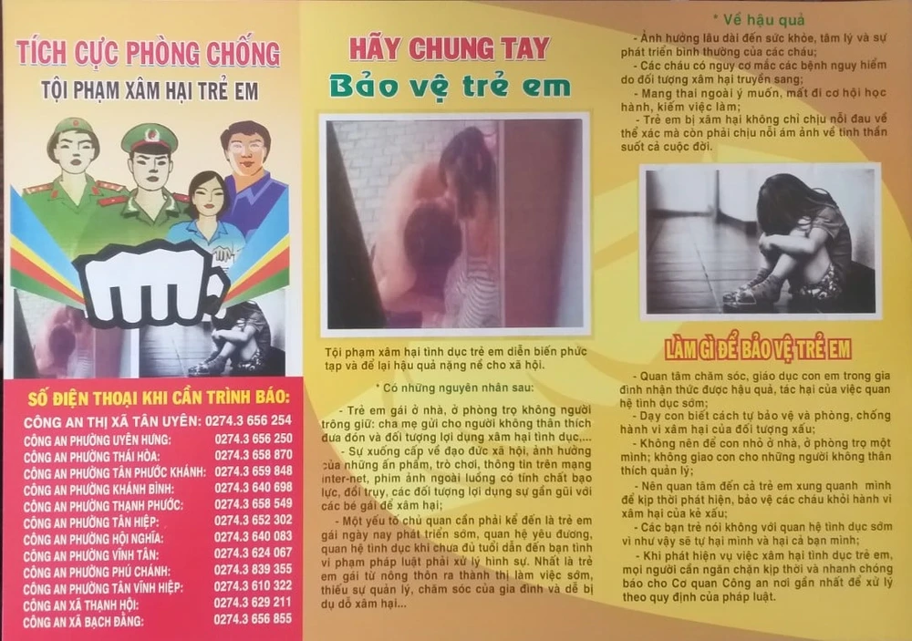 Theo công an thị xã Tân Uyên, trong thời gian gần đây, tình hình xâm hại trẻ em, nhất là hành vi bạo hành và xâm hại tình dục trẻ em trên địa bàn thị xã Tân Uyên nói riêng và trên cả nước nói chung tiếp tục diễn biến phức tạp.
