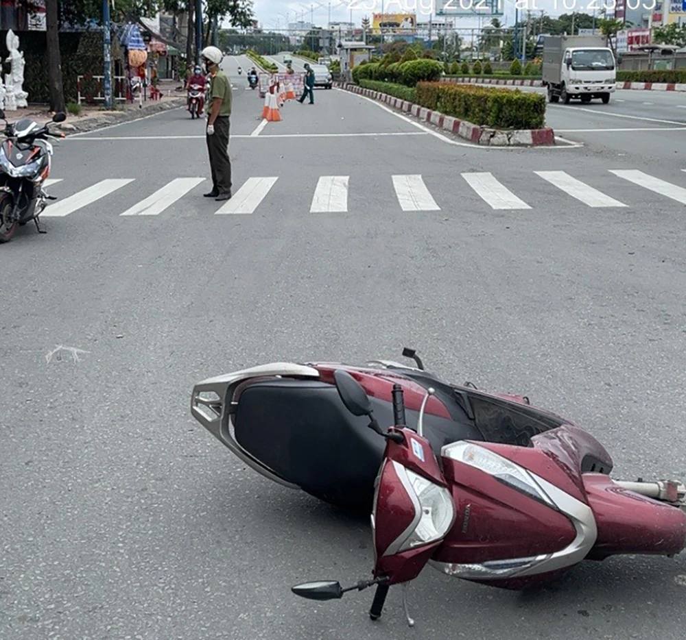 Gần 10 giờ trưa ngày 25-8, trong quá trình kiểm tra tại chốt cầu Tham Lương, tại giao lộ đường Trường Chinh và Phan Văn Hớn (đoạn giáp ranh giữa phường Tân Hưng Thuận và phường Tân Thới Nhất, quận 12) thì đội Điều lệnh, Phòng Công tác Đảng và Công tác Chính trị (PX03) Công an TP.HCM phát hiện có vụ tai nạn giao thông.