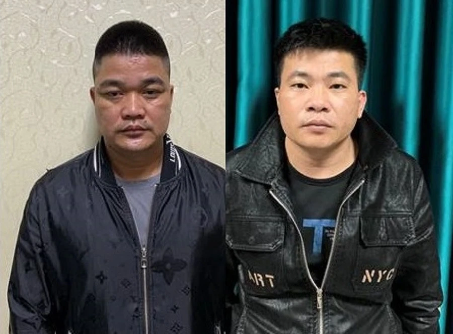 Nguyễn Văn Ngọc (trái) và Đặng Văn Sĩ tại cơ quan công an. Ảnh: CA