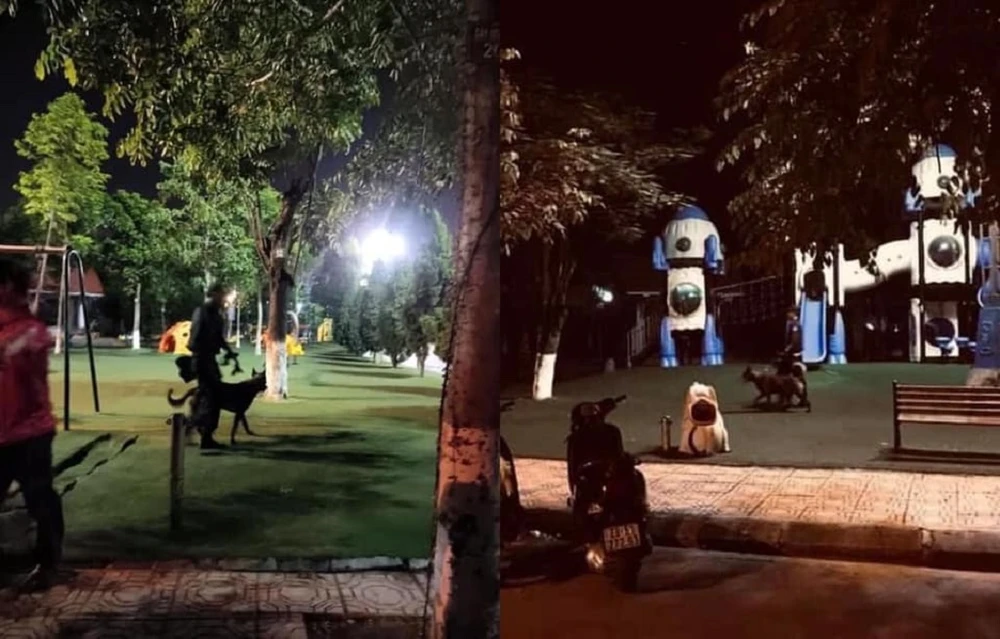 Công an huy động chó nghiệp vụ tìm kiếm cháu bé. Ảnh: FB